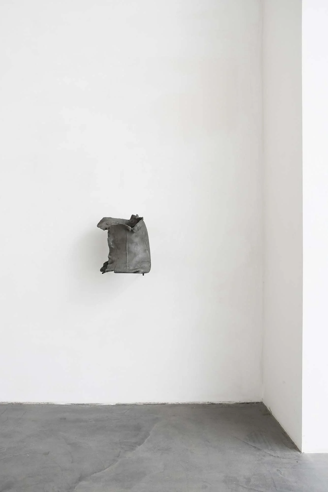 The invitation to 'lie under the floor' is also the title of a sculpture that sits solely on two steel rods and thus offers a view through its hollow body to the floor. On closer inspection, a gentle ear imprint can be found in the surface of the material, which in turn has been created as an imprint from the imprint of a floor.
