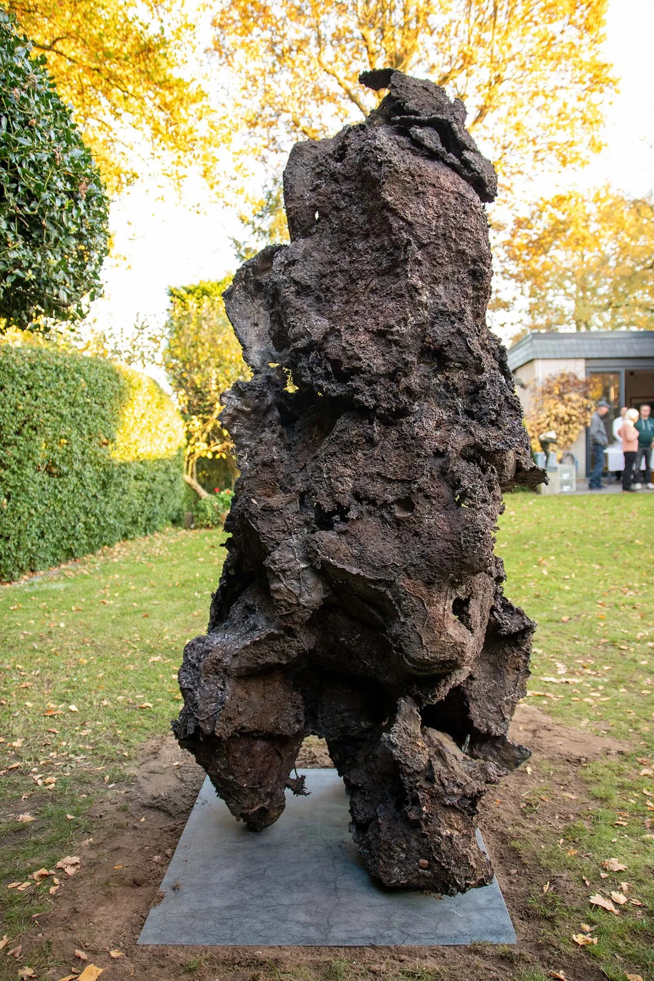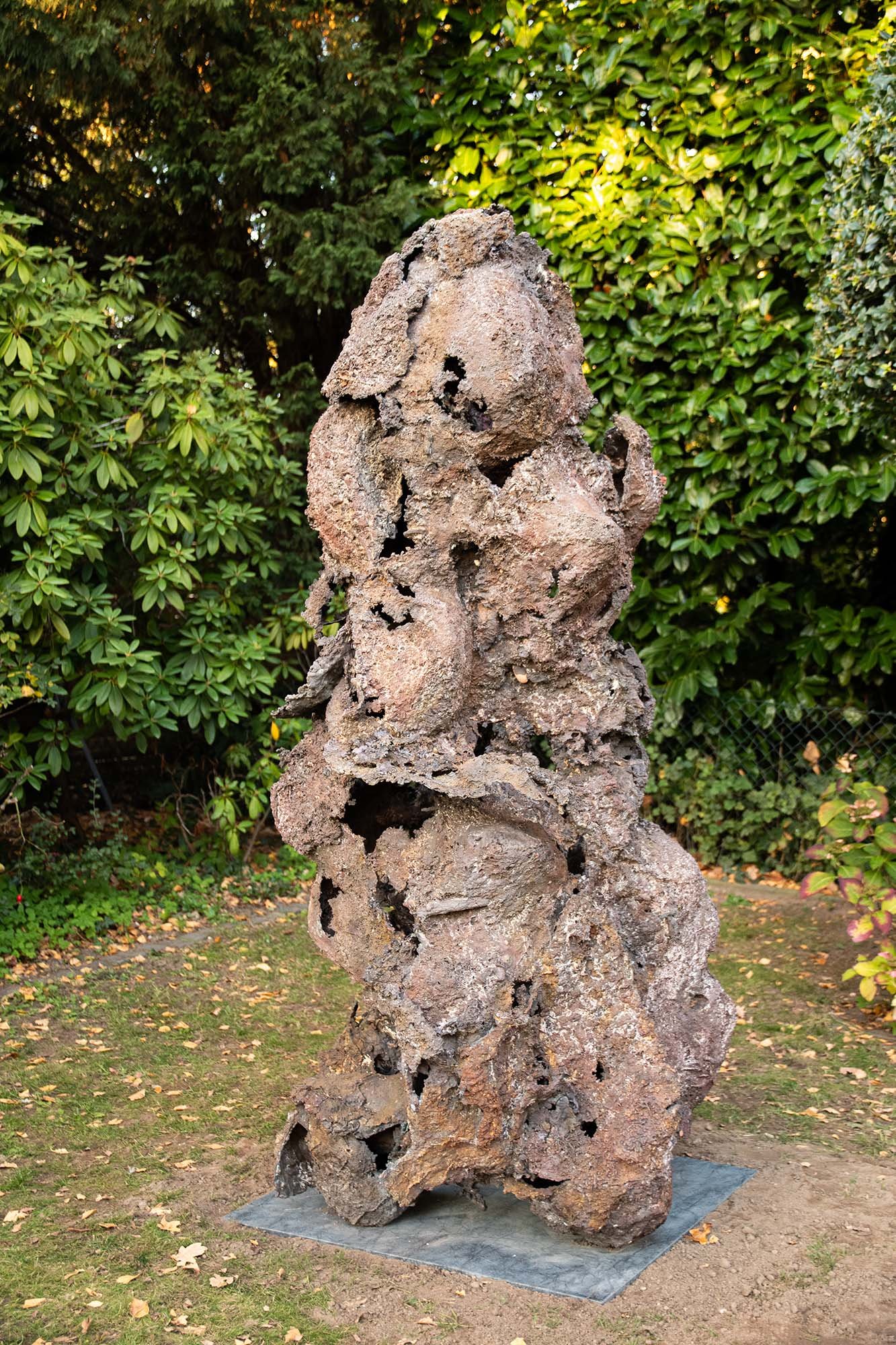 exculpate ist eine Bronzeplastik, deren Form aus einem fortlaufenden Wechselspiel von Präsenz und Abwesenheit entsteht. In der Dialektik von Stabilität und Fragilität erscheint die Form nicht als fixierter Endpunkt, sondern als oszillierende Beziehung zwischen Materialität und innerer Verfasstheit. Der Entstehungsprozess beginnt mit Wachspassstücken sowie konvexen und konkaven Volumina, die aus Abformungen von Erdlöchern und -hügeln hervorgehen. Diese Übertragungen aus dem Boden aktualisieren physische wie mentale Zustände und bündeln sich in einer zentralen Prämisse: Skulptur ist Boden. Der Titel exculpate, abgeleitet von exculpare (freisprechen, entlasten), entfaltet seine Bedeutung in der Nähe zu sculpere (abtragen). Entgegen dem klassischen Verständnis von Skulptur fügen sich hier Bestandteile zusammen. Es entsteht eine Plastik, die eine Fragilität als Stärke formuliert. exculpate ist kein Moment, sondern ein Prozess – eine Manifestation von Boden in Bronze. Daraus entsteht eine Ambivalenz: Schuld und Scham werden nicht entfernt, sondern freigelegt. Abwesenheit entsteht nicht durch Wegnahme, sondern durch Offenlegung und Balance. Die Form verweigert sich vollständiger Verfügbarkeit und eröffnet gerade dadurch einen Resonanzraum zwischen Material, Werk und Betrachter. exculpate bleibt unabschließbar – ein Resonanzkörper in menschlicher Größe.